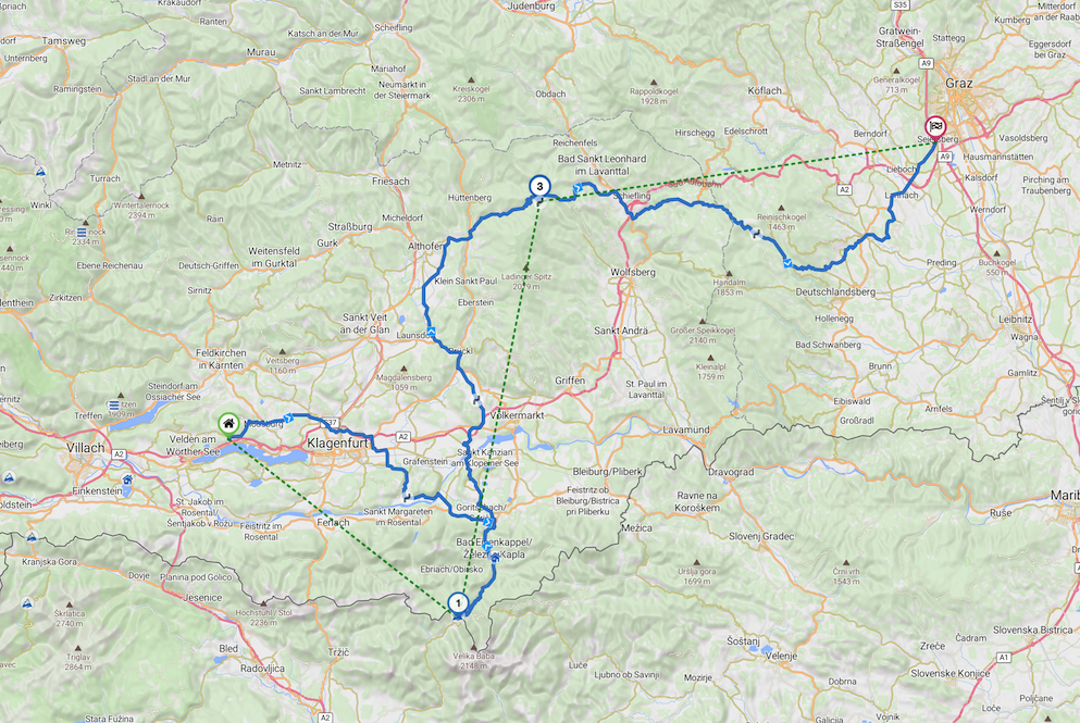 Route Velden am Wörthersee Graz (258 Km 4h 22min)