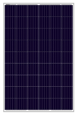 Monokristalline Siliziumzellen: Monokristalline Zellen haben einen Wirkungsgrad von ca. 21%. Die Oberfläche des Moduls ist gleichmäßig dunkel. |