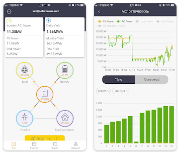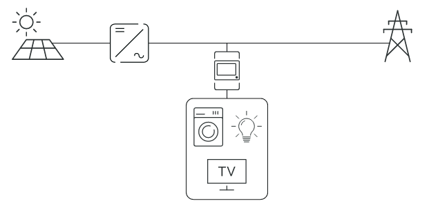 Für die Einspeisung wird ein Netz benötigt. Der Wechselrichter speist sein Maximum an Leistung in das Netz ein und überwacht die Paramter, Spannung, Strom, Frequenz und Temperatur.
