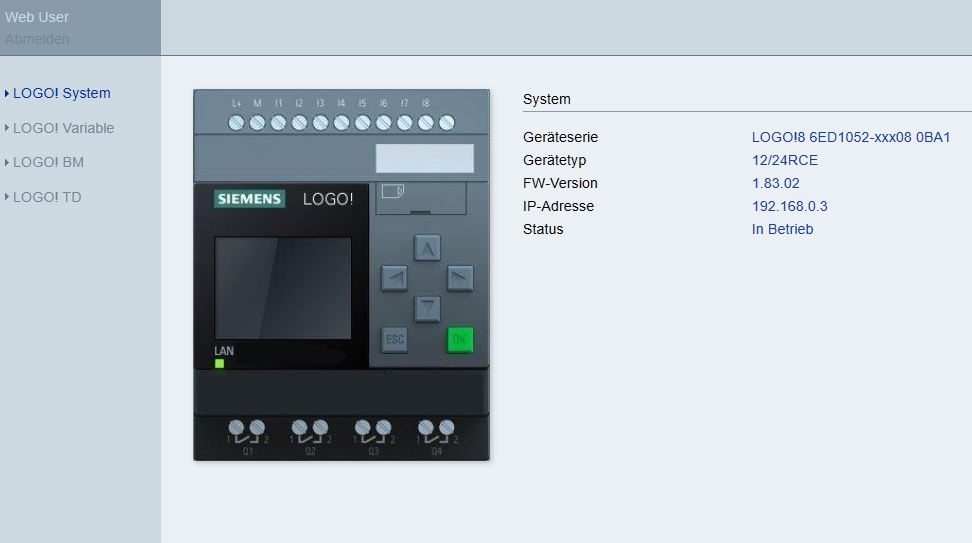 Hier kann die Logo über das grafische TDE Display bedient werden.